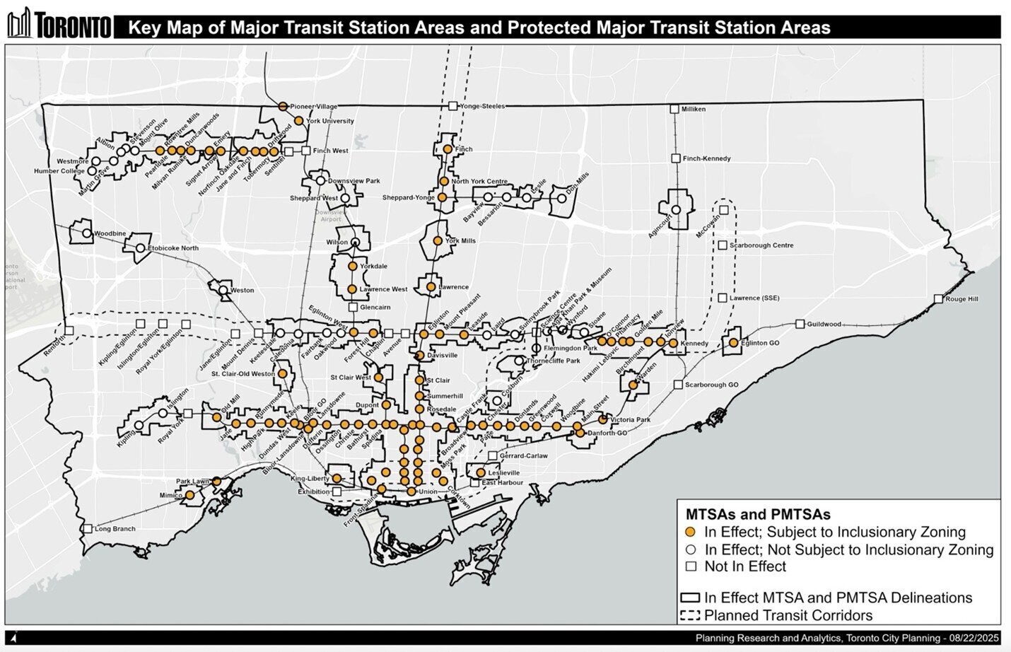 In August 2025, the Province approved Toronto’s Major Transit Station Areas (MTSAs) and Protected Major Transit Station Areas (PMTSAs). These are defined areas within roughly a 10-minute walk of transit hubs (subway stations, GO stations and streetcar stops). There are now 120 of these areas across the city, collectively known as P/MTSAs. Inside these areas, the Province … Read more